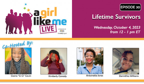 On this very special episode of A Girl Like Me LIVE, host Ciarra “Ci Ci” Covin was joined by three dynamic women: The Well Project community advisory board member Kim Canady and Dandelions, Inc., co-executive directors Antoinette Jones and Derinthia Williams. The four discussed the importance of identity, language, the Dandelions Movement, a USCHA 2023 recap, and more. This episode was a great one!